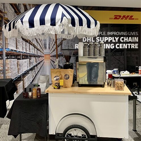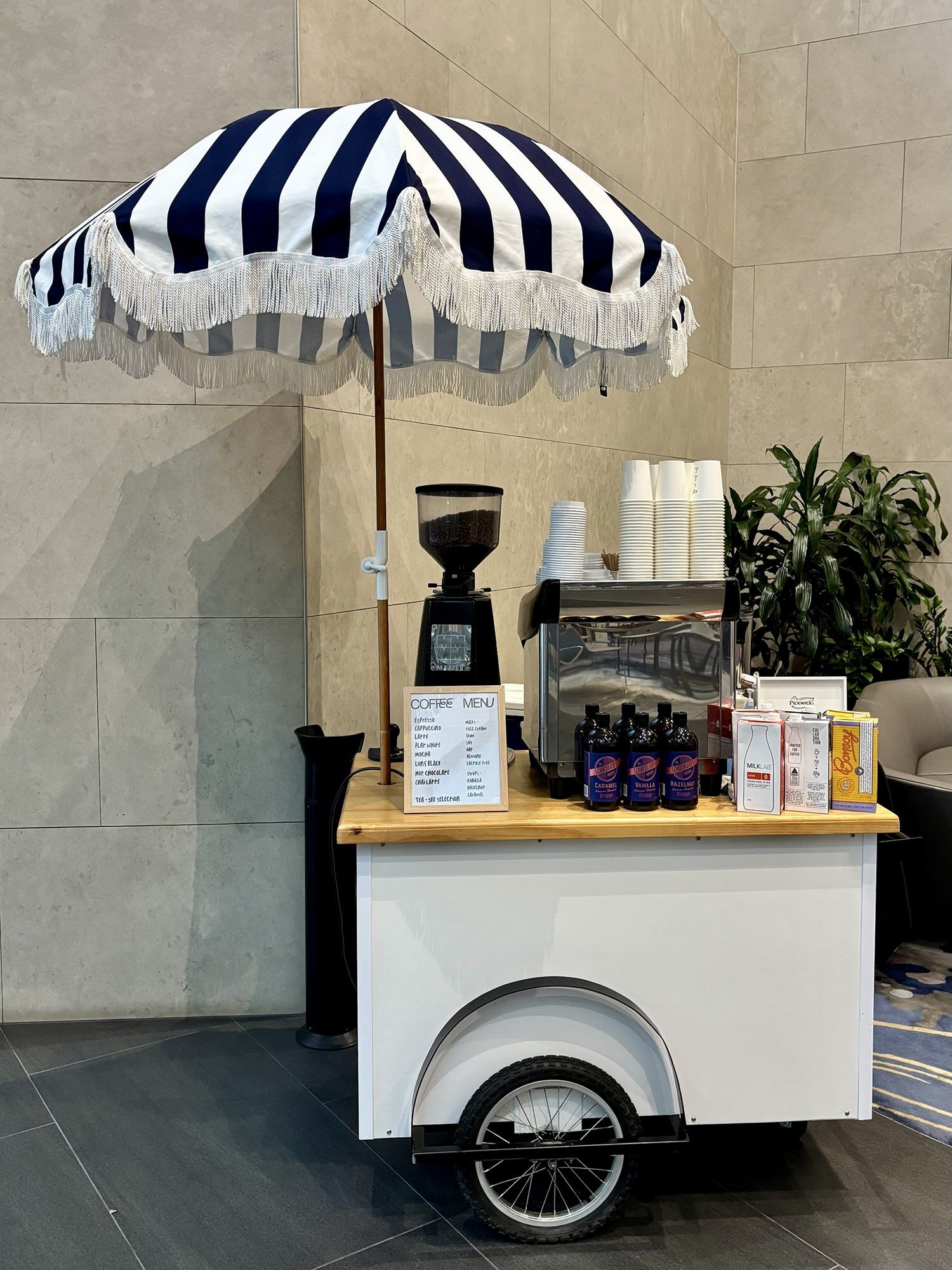- Stylish mobile coffee cart Sydney that can be branded for your next corporate event or brand activation.
